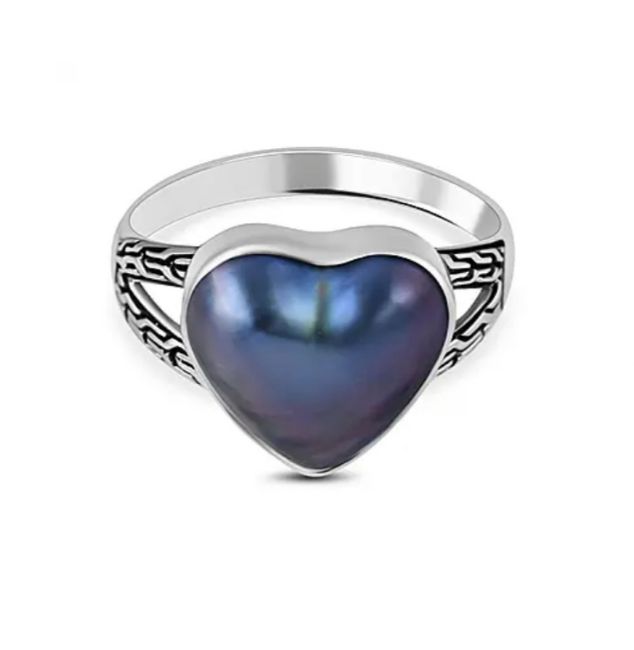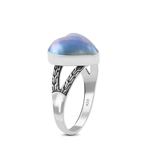 This solitaire ring featuring a blue Mabe pearl will make you a proud owner of artisanal jewellery that showcases the vibrant art of Balinese people.