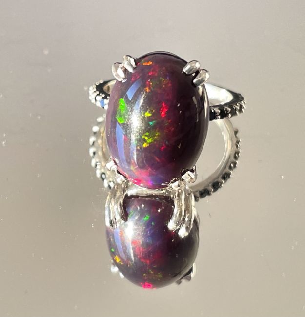 Title: Beautiful 7.66CT Natural Black Opal Ring With Natural Black Diamond & 18k Gold