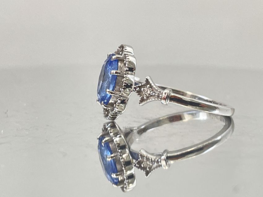 Beautiful 1.74 CT Natural Ceylon Blue Sapphire With Natural Diamonds & 18k White Gold.