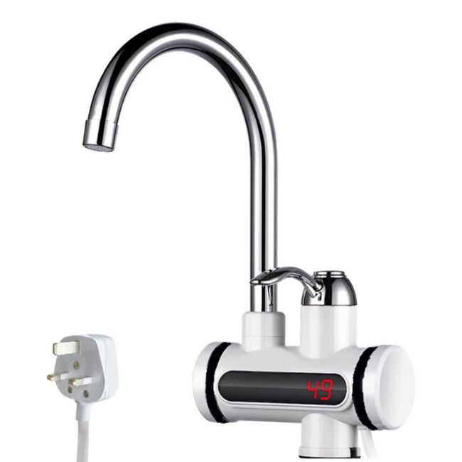 Instant Hot Water Tap Electric Instant Water Heater Boiling Water Tap 220V Water Heaters Faucet Fast Hot Water Tap with LED Digital Display for Kitchen Bathroom Facilities(British Plug)
