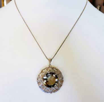 The pendant is on a 20 inch sterling silver chain.