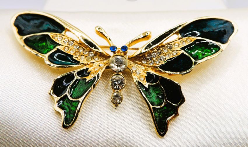 The brooch is 7.5 cm wide and is in excellent condition and includes a gift pouch.