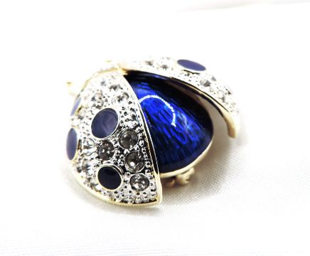 Enamel ladybird brooch encrusted with clear crystals with gold plated accents Size: 3 x 3.7 cms.  Condition: Excellent as new