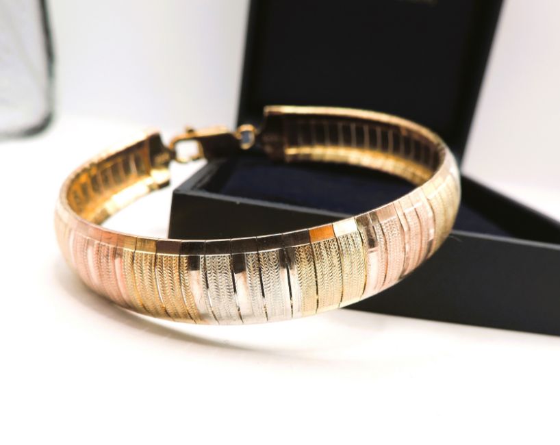 Title: Vintage Milor Italy Tri-Colour Gold On Sterling Silver Cubetto Bracelet With Gift Box
