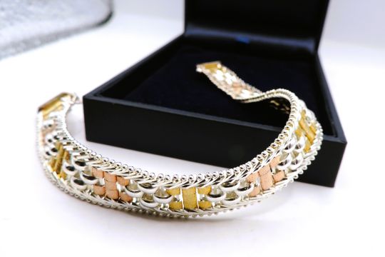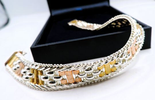 The bracelet is 7.5 inches long (19cm) and 1.4cm wide and weight 19grams. Stamped Milor Italy and 925.