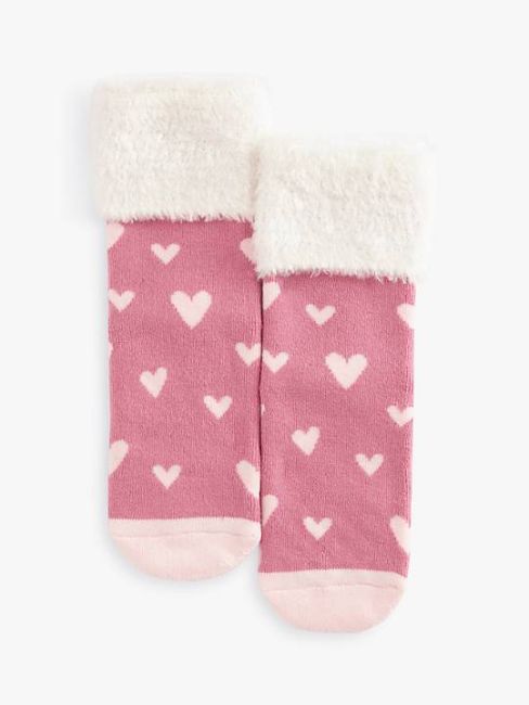 John Lewis Kids' Heart Terry Slipper Socks, Pink/White, 6-8.5 Jnr.