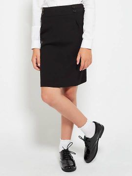 John Lewis Girls' Adjustable Waist Stain Resistant Button School Trousers, Black.