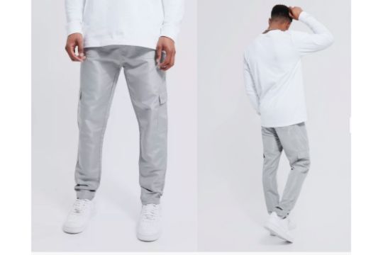 Title: Brand New BooHoo Mens Grey Skinny Fit Shell Cargo Trousers Size XS