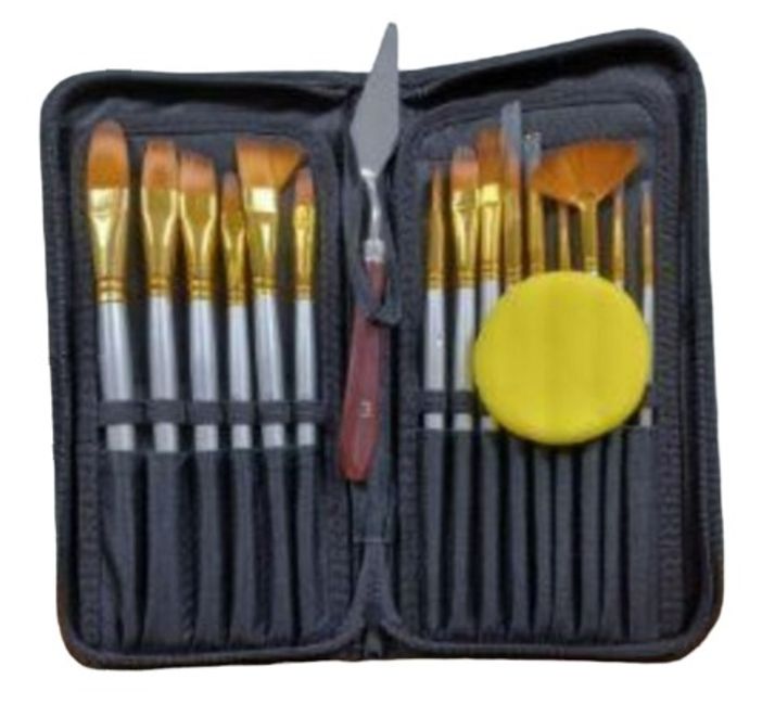 Title: 15 Piece Artists Paint Brush Set & Case Knife & Sponge Included