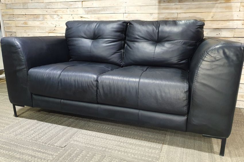 Title: Italian Black Pu Leather Sofa With Black Metal Legs RRP £1299