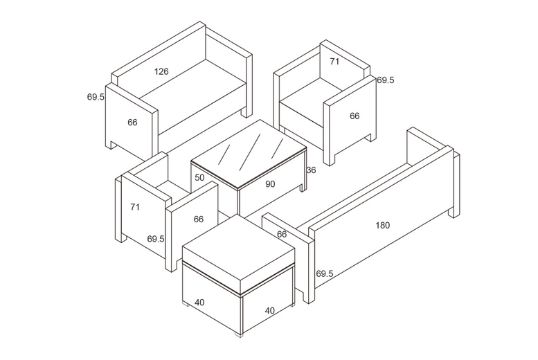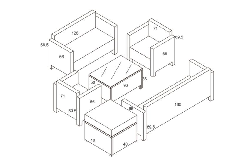 Three-Seater Sofa: W 180cm x D 66cm x H 69.5cm