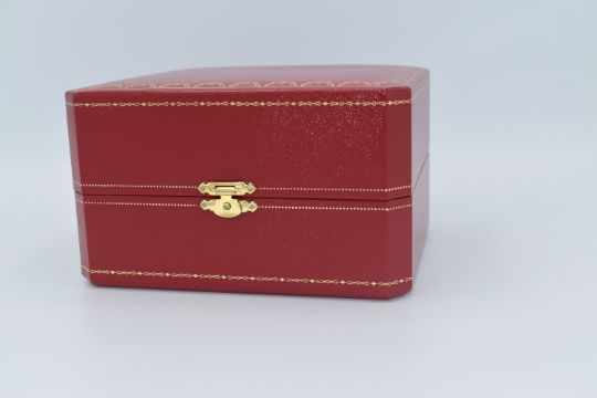 The clock is auctioned with its original sleeve and red Cartier box.