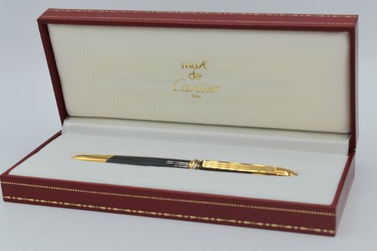 The ballpoint operates by a simple rotating opening mechanism and includes the famous red Cartier box, outer card box and original papers of authenticity.