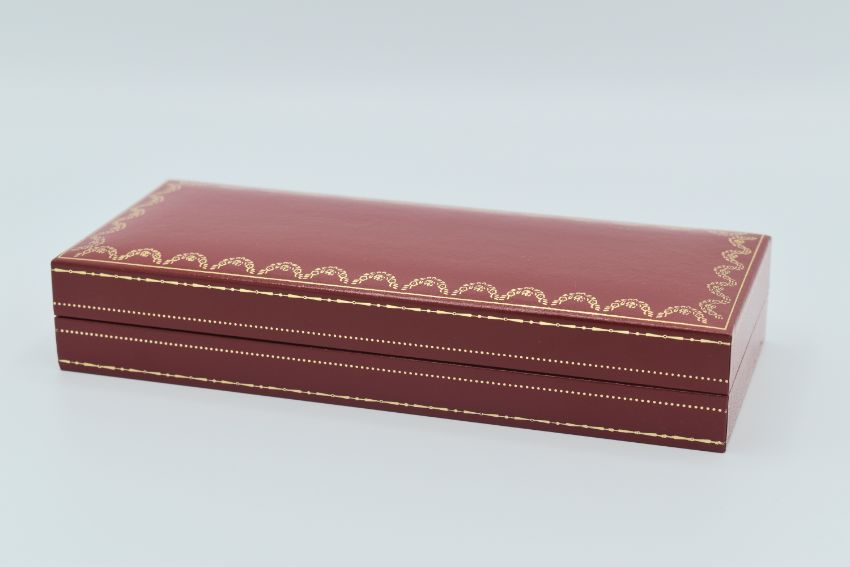 The pen is Cartier cartridge and converter compatible and still carries the size 'M' label for the nib.