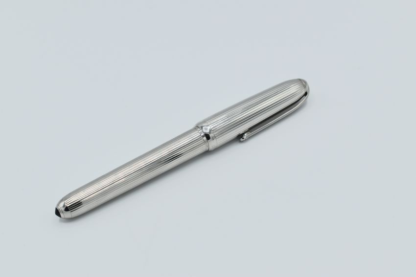 This is a delightfully understated Cartier fountain pen, a limited edition from the Louis Cartier ‘Must De Cartier’ collection in a full platinum finish.
