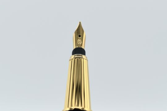 The pen boasts an 18K solid gold nib, size M.