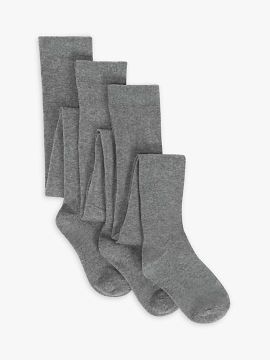John Lewis ANYDAY Kids' Cotton Rich Tights, Pack of 3, Grey, 7-8 years.