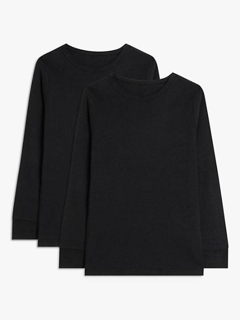 John Lewis Kids' Thermal Long Sleeve Top, Pack of 2, Black, 7-8 years.