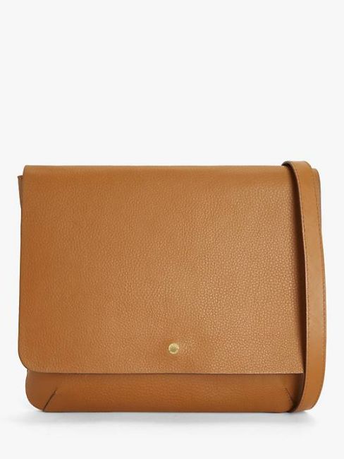 John Lewis Smooth Leather Flapover Cross Body Bag, Tan.