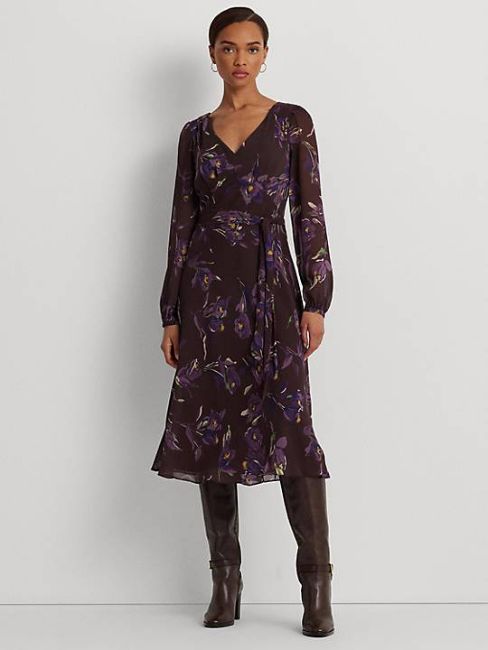 Lauren Ralph Lauren Tamerlait Floral Print Dress, Brown/Purple, 16.