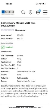Title: Comet Mosaic Ivory Tiles 120 Tiles 600x300 20 Boxes Good Solid Tiles RRP £600