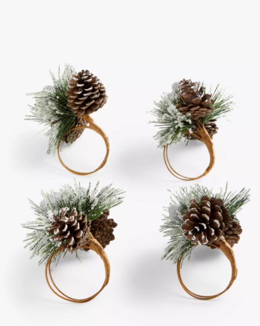 John Lewis Christmas Pinecone Napkin Rings, Set of 4, Brown/Silve