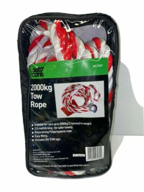 Box Contains 1 X Autocare 2000Kg Tow Rope,1 X warning flag ,1 X ON TOW sign.