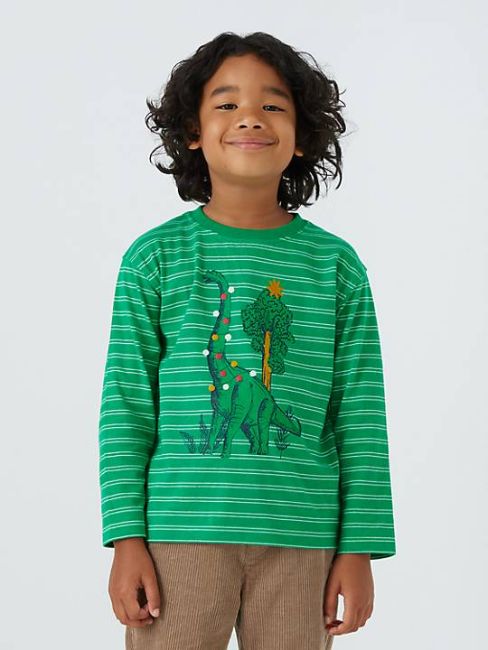 John Lewis ANYDAY Kids' Let's Hang Bauble Raglan Sleeve Jersey Top, Red, 3 years.