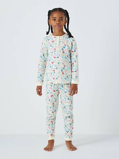 John Lewis Kids' Cotton Ruffle Collar Ditsy Floral Pyjamas, Multi, 11 years.