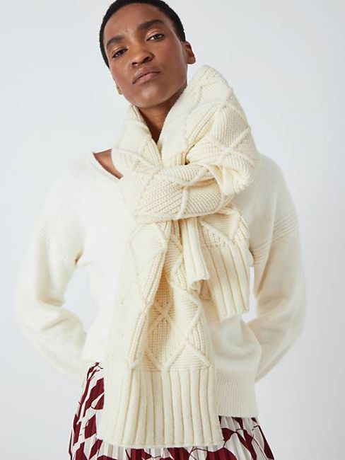 John Lewis ANYDAY Metallic Thread V-Neck Chunky Knit Jumper, Cream/Gold, S.