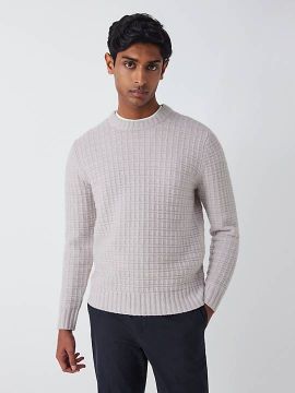 John Lewis Cashmere Rib Trim Crew Neck Jumper, Mid Blue, 10.