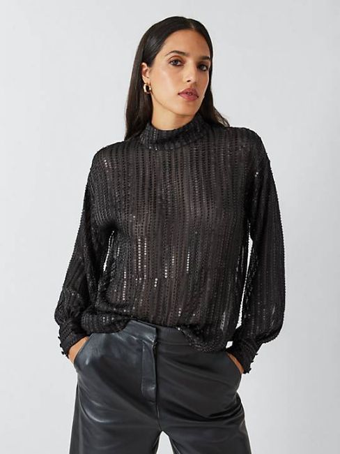 AND/OR Jojo Opaque Sequin Blouse, Black, 10.
