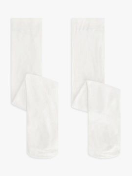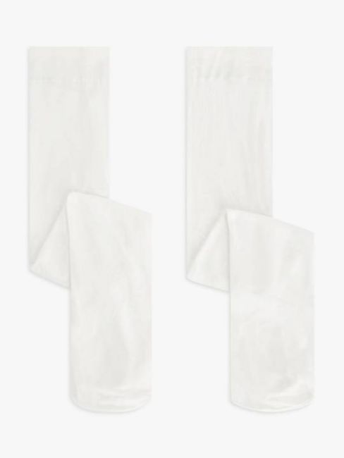 John Lewis ANYDAY Kids' Opaque Tights, Pack of 2, White, 9-10 years.