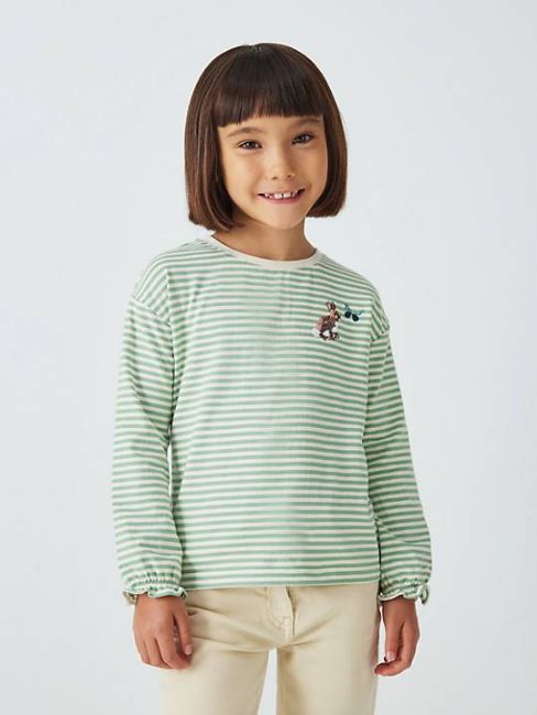 John Lewis Kids' Waffle Stitch Stripe Top, Green, 2 years.