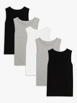 John Lewis ANYDAY Kids' Cotton Singlet Vests, Pack of 5, White, 14 years.
