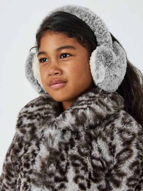 John Lewis Kids' Faux Fur Ear Muffs, Grey.