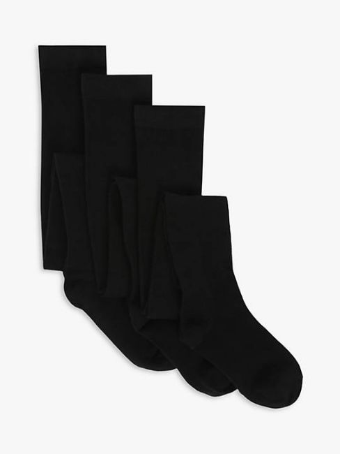 John Lewis ANYDAY Kids' Cotton Rich Tights, Pack of 3, Black, 11-12 years.