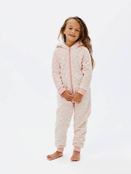 John Lewis ANYDAY Tulip Borg Fleece Pramsuit, Cream/Pink, 3-6 months.