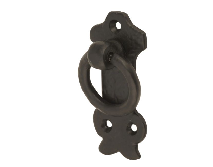 Title: Ring Cabinet Drop Handle - 42mm Diameter On 80 x 36mm Plate - Antique Black Iron