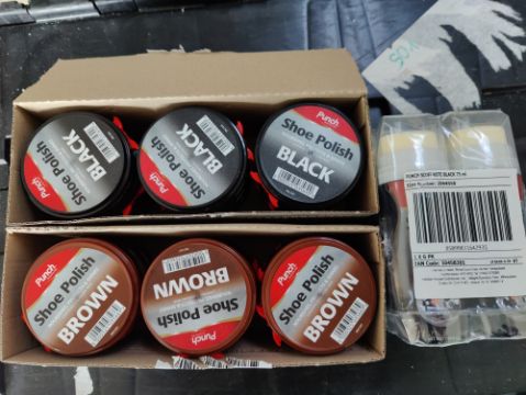 Title: Box of 24 Punch Shoe Polish Black, Brown and 6 Scuff