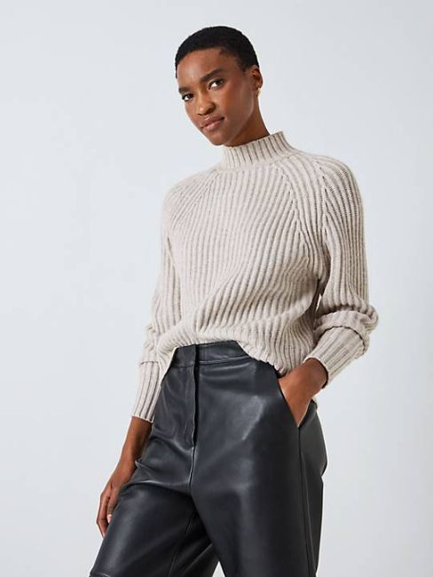 John Lewis Plain Ribbed Roll Neck Top, Charcoal, 8.