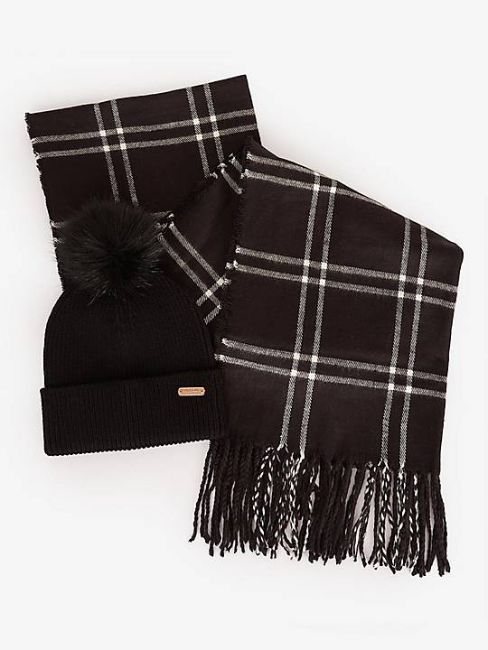 Barbour Dover & Hailes Beanie Hat & Scarf Gift Set, Black/Multi