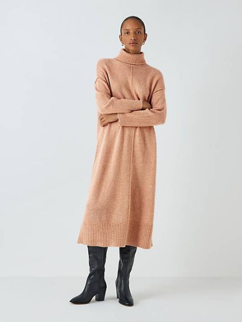 John Lewis Merino Wool Turtle Neck Jumper, Grey, M.