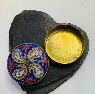 Vintage Chinese Yellow Metal and Cloisonné Enamel Pill Trinkets Box