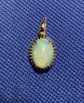 Beautiful Natural 3.60ct Opal Pendant &0.28 Black Diamonds & 18k White Gold.