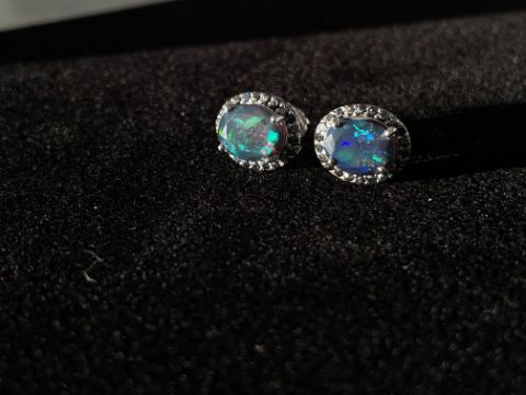 Title: Beautiful Natural Black Opal Earrings With Natural Black Diamond & 18k Gold