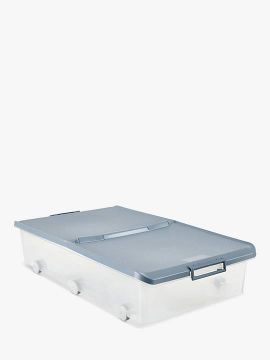 TATAY Hinge Lid Underbed Storage Box, Light Blue, 63L.