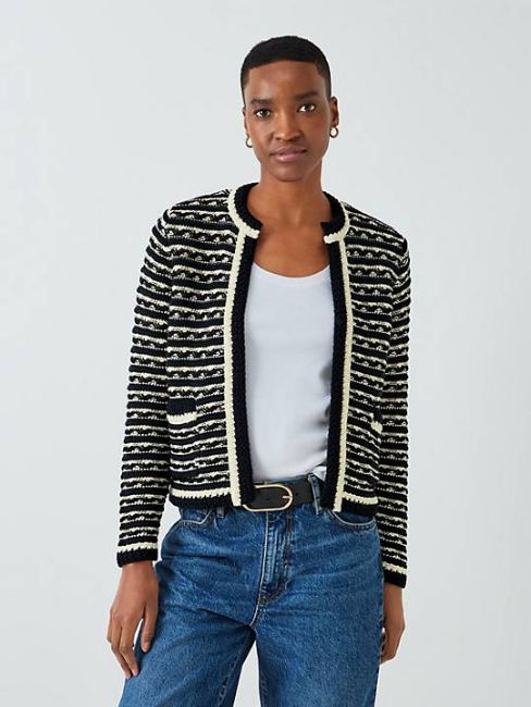 John Lewis Cashmere Crew Neck Cardigan, Black, 10.