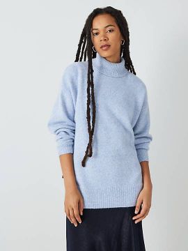 John Lewis Cashmere Roll Neck Jumper, Blue, 10.