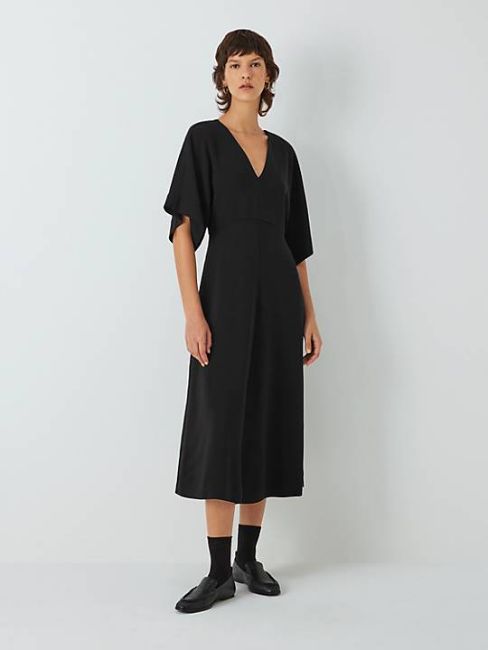 John Lewis Ruched Cap Sleeve Dress, Black, 12.